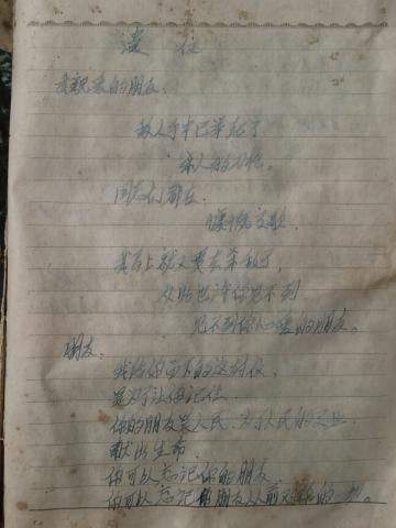 访谈中,他讲述了战争的残酷:敌人伪装偷袭、白天无法行军、依靠北斗星夜行攀爬、时刻提防渗透。物资极度匮乏,井水有毒风险下只能饮用浑水,靠压缩饼干充饥。他所在的重机枪班7人,第一场战斗中就牺牲3人。面对每分钟倾泻200发子弹的生死时速,他怀揣的信念从未动摇:“国家有难军人就该挺身而出,即便牺牲也是光荣的......”最令人动容的是,他珍藏并展示了一份写于1979年3月24日的《遗书》和《赠战友》诗稿。遗书中字字泣血,句句铿锵: