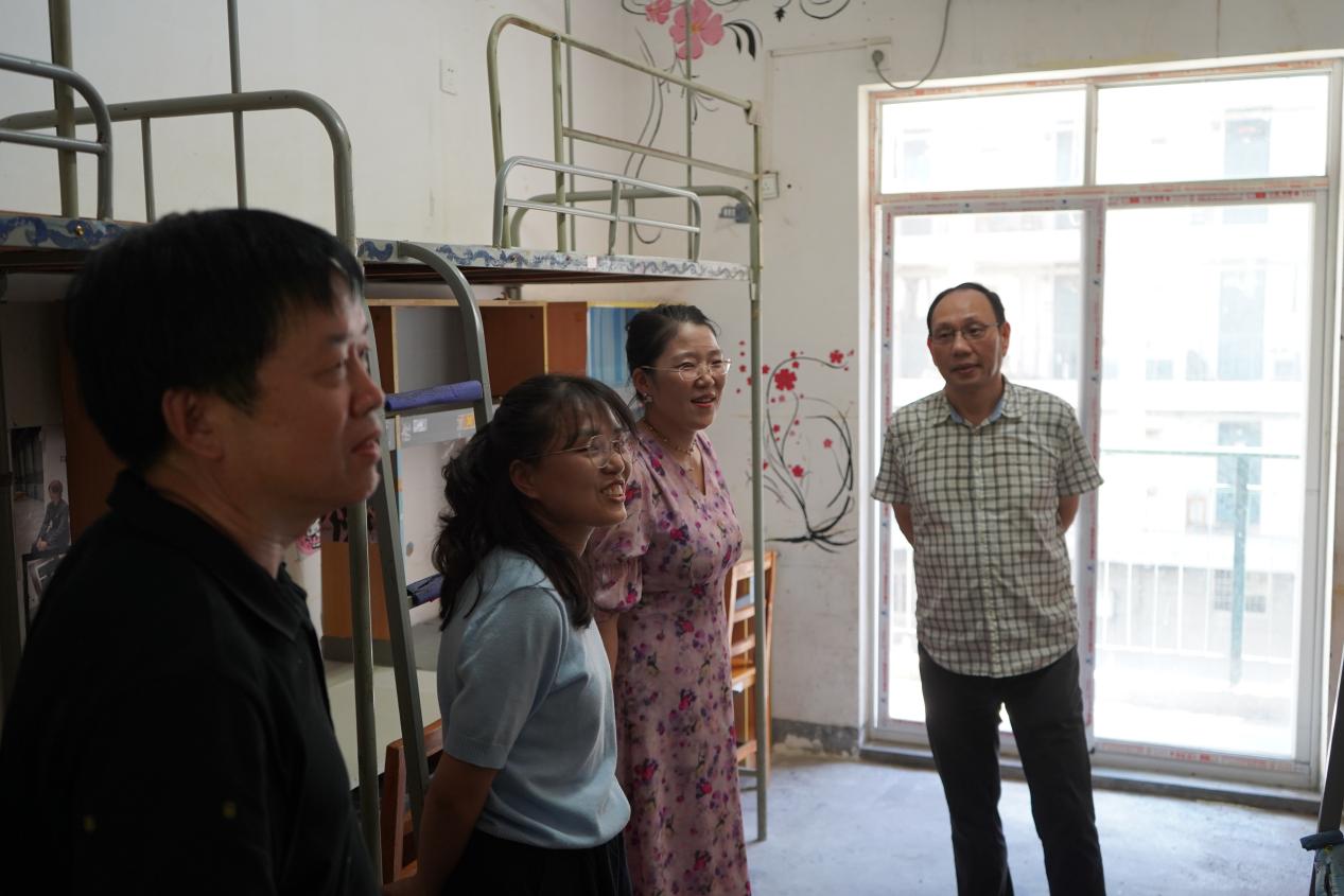 8月31日老生返校,学院党总支副书记李春梅再次带领全体辅导员深入各年级学生宿舍,亲切看望返校学生,与同学们交流假期生活与新学期规划,并送上诚挚祝福,鼓励大家以饱满精神迎接新挑战、收获新成长。