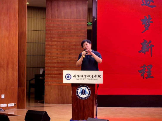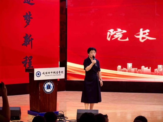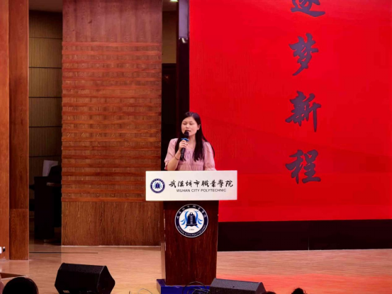 第二项由初等教育学院院长王霞老师致辞。她结合自身成长经历与教育初心,分享了对自己人生有深远影响的老师,以及选择扎根初等教育事业的坚定信念。王院长详细介绍了学校百余年的办学历史、顶尖的小学教育资源与优势专业,让新生充分了解学院实力;同时围绕学业学习、实习实训、学历提升与校园生活,为25级新生指明了成长方向,鼓励同学们努力成长为心中有爱、眼中有光的“四有”好老师。