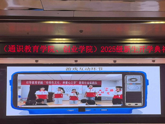 伴着金秋的清爽与枝头的硕果,崭新的学期正式开启。为了帮助2025级新生更快融入校园生活、明确学业方向,同时传递暑期社会实践的宝贵经验,9月10日,初等教育学院(通识教育学院、创业学院)于北校区学术报告厅举行2025级开学典礼暨暑期社会实践分享会。出席本次活动的有初等教育学院党总支书记潘中锋老师、院长王霞老师、党总支副书记李春梅老师,25级各班班主任、全体辅导员老师以及25级全体新生。
