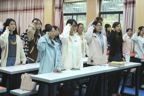 第一项,各班团支书介绍团费缴纳情况,并带领团员重温入团誓词。团员们面向团旗庄严宣誓,铿锵誓言彰显了坚定不移听党话、跟党走的决心。
