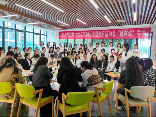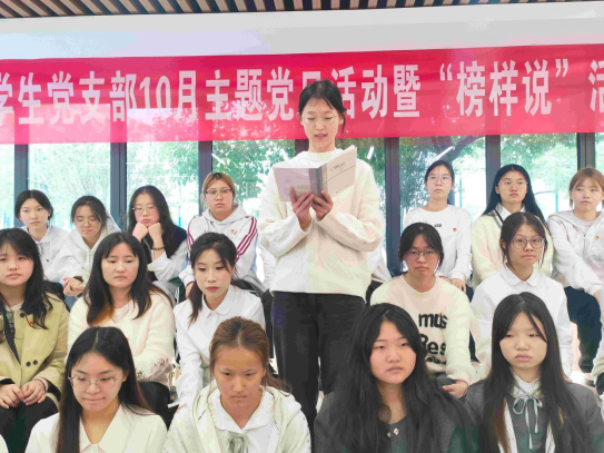 为强化党员队伍的思想建设,充分发挥榜样的示范引领作用,10月30日中午一场意义非凡的10月支部主题党日暨“榜样说”活动在北区“一站式”学生社区开展。参与本次活动的有学院党总支副书记李春梅老师、学生党支部全体党员师生、入党积极分子等。