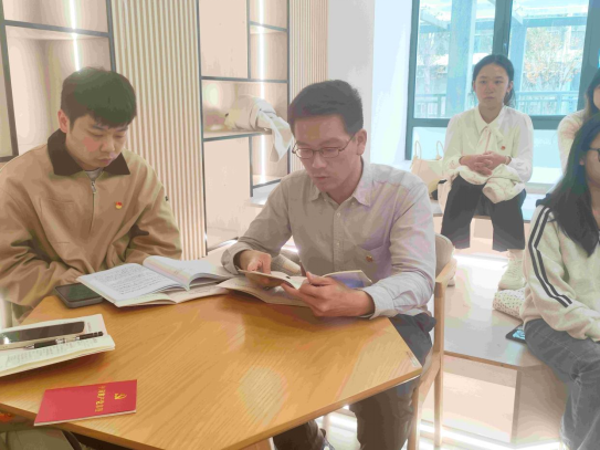 随后,开展学生党支部10月主题党日活动,王斌老师带领大家学习《习近平谈治国理政》第五卷,“从现在起,中国共产党的中心任务就是团结带领全国各族人民全面建成社会主义现代化强国,实现第二个百年奋斗目标,以中国式现代化全面推进中华民族伟大复兴。”这一宏伟目标,为全体党员指明了前进的方向。