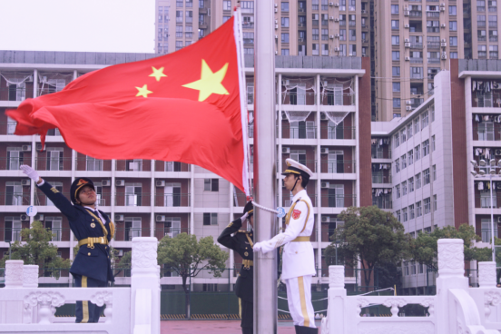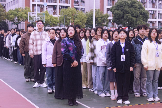 第二项,升旗仪式。激昂的国歌奏响,学校国旗护卫队迈着铿锵有力的步伐,护送国旗走向旗台。在晨光的映照下,五星红旗缓缓升起,全场师生肃立,满怀崇敬地行注目礼,一同见证这庄重神圣的时刻。