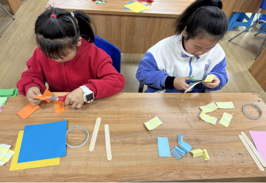 活动的气氛在成果展示环节被推向高潮。孩子们自信地举起自己的手工作品,每一张脸庞都因成就感而闪耀着光。在刘金钰老师与助教们的引导下,课堂化身为一个微型艺术沙龙,孩子们不仅欣赏着彼此的创意,更兴奋地交流着“独门秘籍”。一位小男孩将作品举到助教眼前,语气里满是骄傲:“看,我做的纸翻花,能变出三种花样!”——那不仅是三种花样,更是古老技艺在一颗童心中绽放出的新奇光芒。