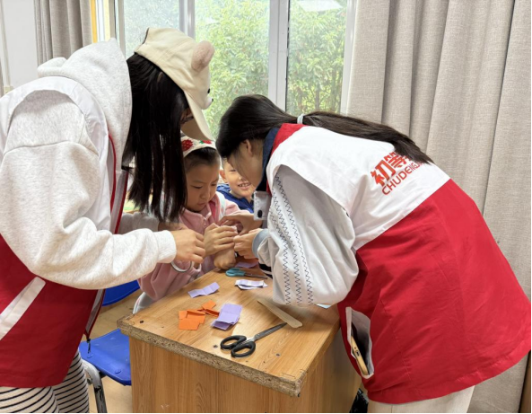 本次活动充分展现了志愿者团队的协作精神。在主讲人刘金钰的带领下,志愿者们既分工明确又配合默契,保障了活动各环节的顺畅进行。通过这次实践活动,不仅让孩子们领略了非遗手工纸翻花的独特魅力,志愿者们也在服务中提升了沟通协调能力。
