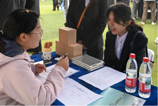 初教学子们精神饱满、自信从容地穿梭于各个展位之间,积极与招聘人员沟通交流,展现出了扎实的专业素养和良好的精神风貌。相信在学院师生的共同努力下,初等教育学院(通识教育学院、创业学院)2026届毕业生定能在就业道路上迈出坚实步伐,开启精彩未来。