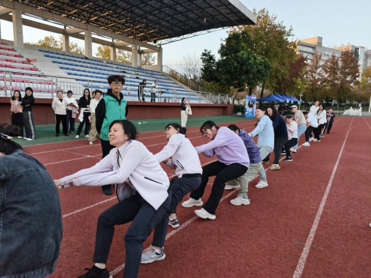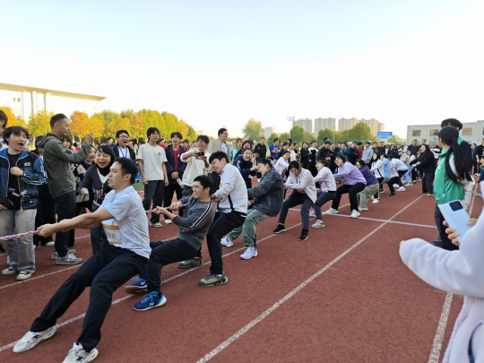 在备受瞩目的拔河比赛环节,我院教师们紧握长绳,心往一处想,劲往一处使。震耳欲聋的加油声与整齐划一的口号声,将现场气氛推向高潮,充分展现了“上下同心、其利断金”的团队力量。