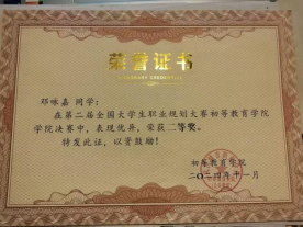 14. 第二届全国大学生职业规划大赛初教决赛二等奖