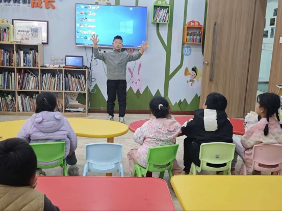 第三位小朋友讲述《夸父追日》,他描绘着夸父逐光的执着,翻山越岭、不畏艰难的身影,让台下小伙伴深深着迷。他用故事告诉小朋友们:心怀热爱便不惧路遥,坚持到底就是成长的力量~古老神话里的勇气与坚守,正悄悄在孩子们心中生根。