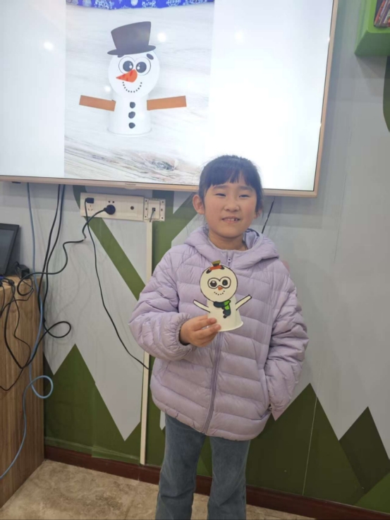 随后,主讲人带来绘本《他看见了一只猫》,生动的讲述带领孩子们走进奇妙视角世界,飞鸟、鱼儿、狐狸眼中的小猫藏着“换个角度看万物”的小智慧。这个故事让小朋友们明白:不同人眼中的自己是不一样的,只要我们努力做好自己,我们就是最棒的!接着,志愿者们带领小朋友们一起做雪人纸杯手工,雪人纸杯手工就此欢乐开启!小朋友们手持彩纸、胶水,在指导下折折剪剪,一个个圆滚滚、笑眯眯的雪人纸杯新鲜出炉,小朋友们成就感拉满,这场活动充满了成长与欢乐!