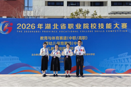 1月10日至11日,2026年湖北省职业院校技能大赛教育与体育赛道(高职组)在湖北幼儿师范高等专科学校开赛。本次大赛吸引全省29支参赛队伍同台竞技,我院4名选手以优异的表现获得小组第一、总分全场第一的好成绩。